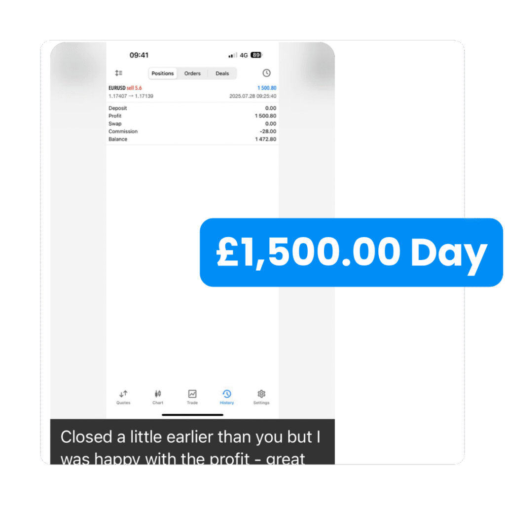 This immersive trading expereince includes out 90+ lesson video course, interactive quizzes to test your knowledge, 1-1 support & LIVE examples of the trades that you can find on completition of our programme.
